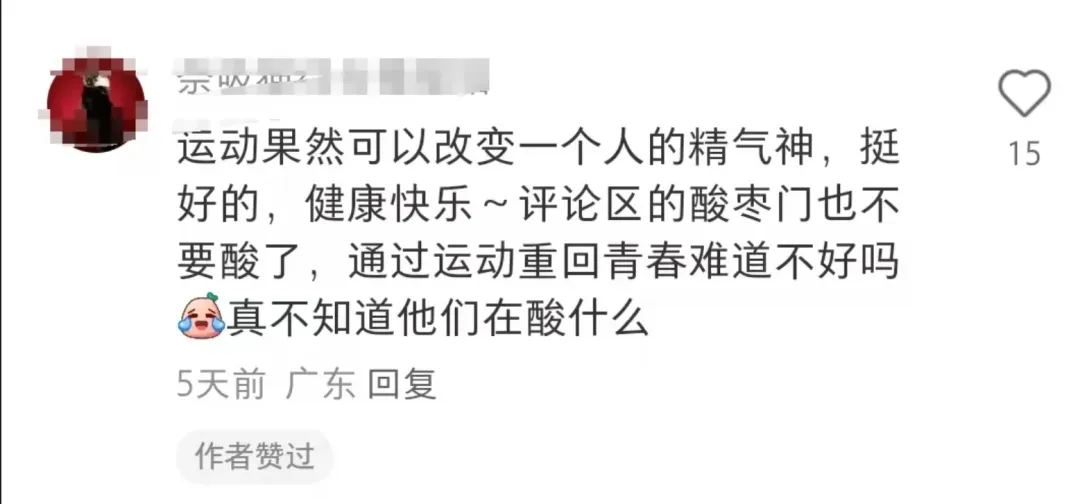也有网友表示:“运动真的可以改变一个人的精气神。”