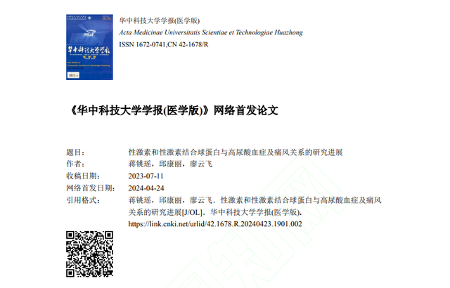 资料参考:[1] 蒋铫瑶.性激素和性激素结合球蛋白与高尿酸血症及痛风关系的研究进展 ,华中科技大学学报(医学版),2024-04-24