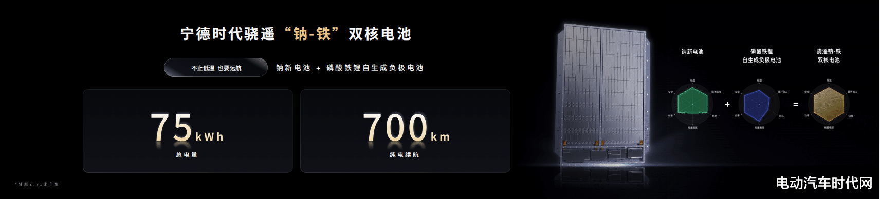 钠-铁双核电池——:钠新电池+磷酸铁锂自生成负极电池,充分利用钠新电池的低温性能,为用户带来不止低温更要远航的极致体验 。