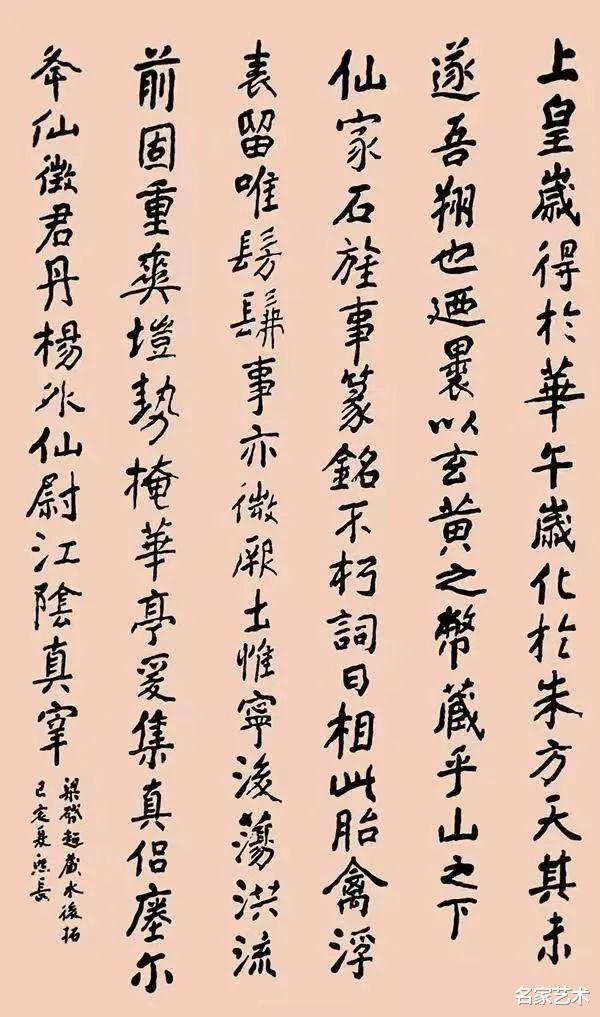 金熙长以“真阳笔法”著称,主张雄浑豪迈的书写风格,反对浮华媚俗。他系统考据并临写《瘗鹤铭》《许长史碑》等南北朝碑刻,提出“草从篆化、楷从隶出”的书学理念,被誉为“仙家书法”的代表人物。
