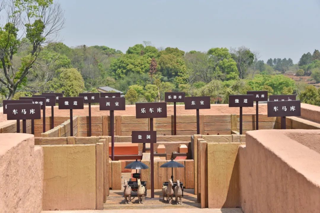 园区有一处模型,展现了海昏侯墓的内部结构,海昏侯和夫人两座主墓同茔异穴,两墓共用一个由东西厢房、寝和祠堂,历史上虽然也有盗洞,但幸运的是,盗墓贼并没有成功。
