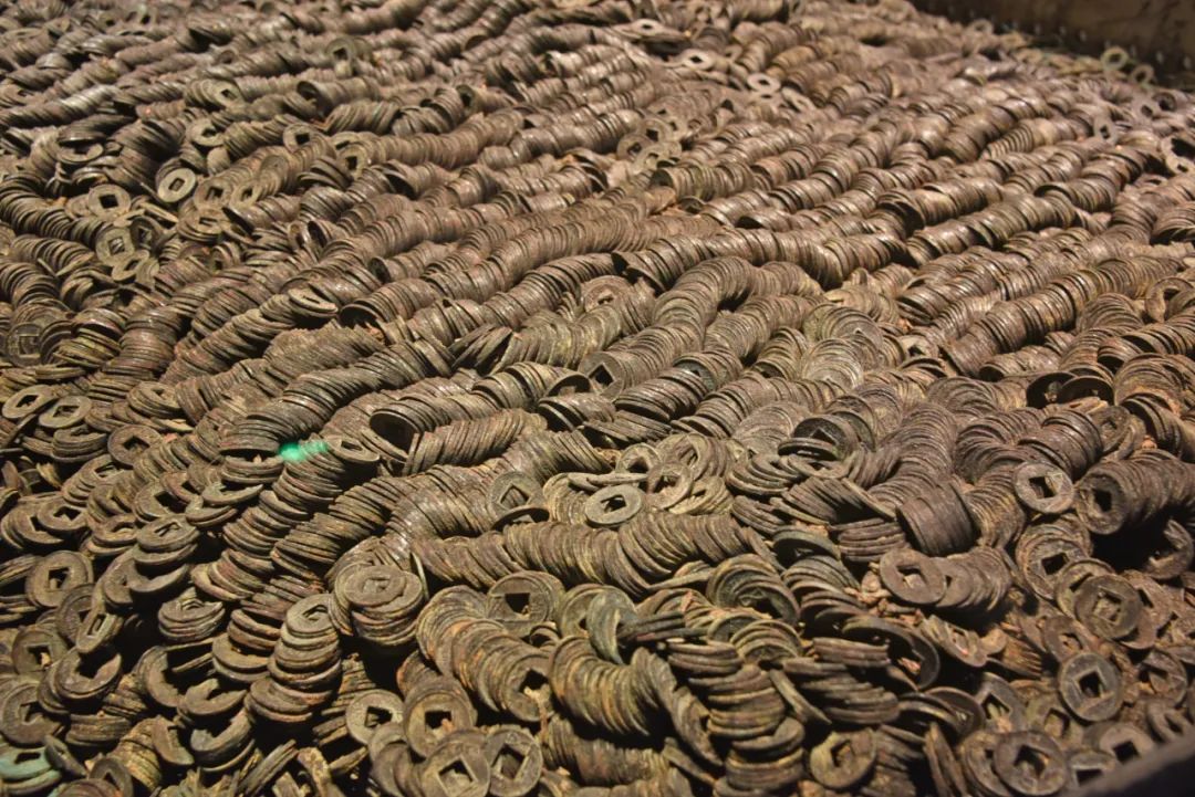 至于出土的钱币,完全不能论个计算,墓钱库发现的“五铢钱”,高1.8米,成串码放,总数超过200万枚,总重量10余吨,真正是堆积如山。