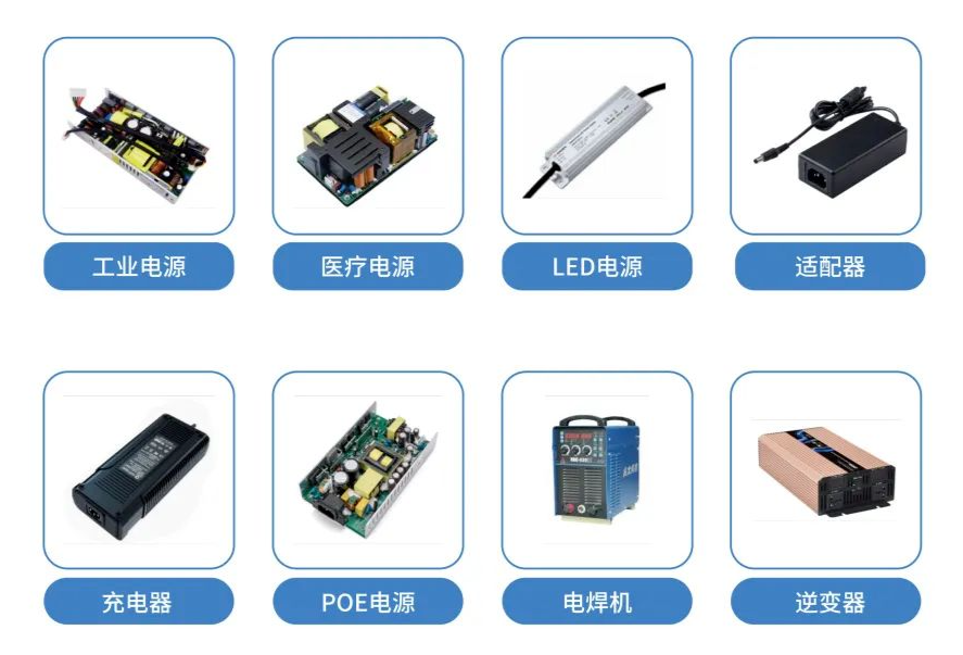 LED电源、电源VCC供电、POE电源、音响电源、充电器领域的应用: