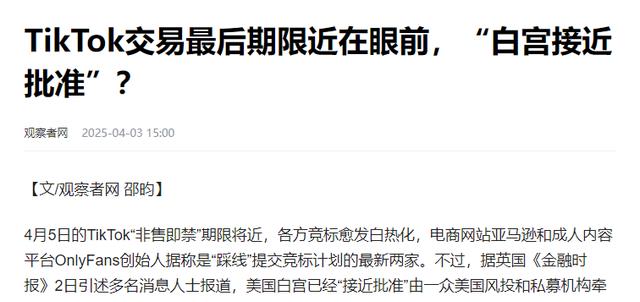 4月10日一早,美国白宫便通过美媒向外界传出了新的意向,其中明确表示因为我国态度上的一系列变化,导致美国将不再考虑任何涉及TikTok业务收购的交易。