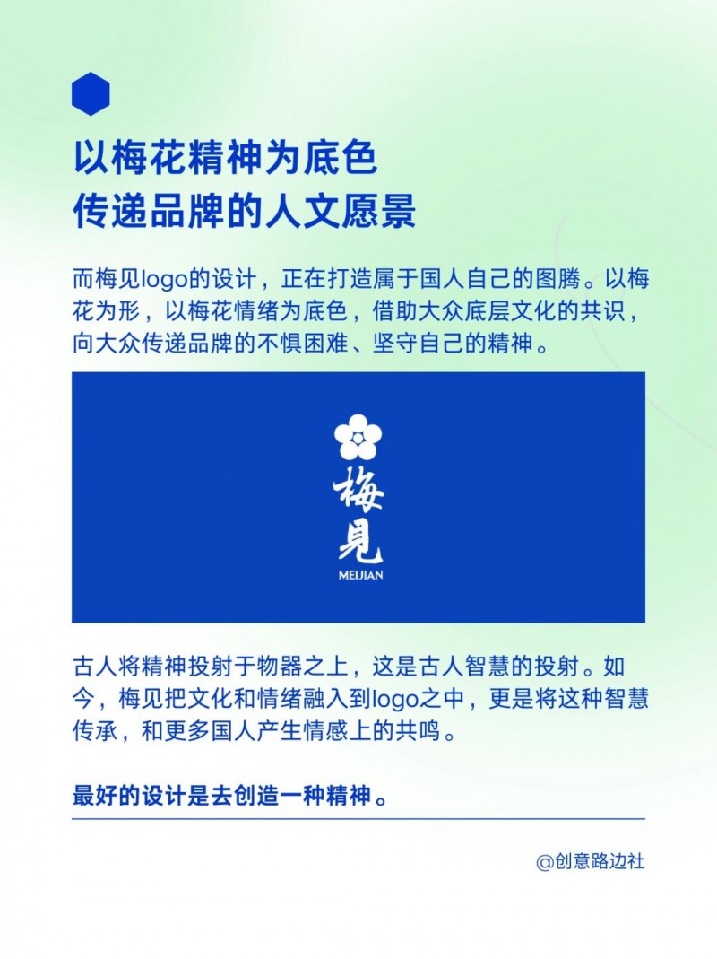 古人将精神投射于物器之上,如今,梅见把文化和情绪融入到logo之中,更是将这种智慧传承,和更多国人产生情感上的共鸣。最好的设计是去创造一种精神。