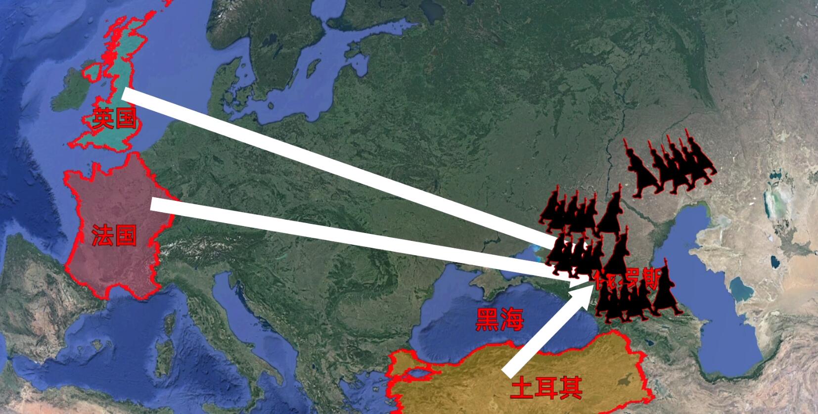 事情的开始,俄国扩张的势头,令英国感到非常不安,英国害怕俄罗斯帝国控制奥斯曼帝国两海峡,从而导致英国在地中海的利益受损,所以他们便与法国站在了一起,对奥斯曼帝国进行了支持。在英法两国的支持下,奥斯曼帝国便对俄罗斯帝国展现出了强硬态度,并在两国利益谈判中,拒绝了俄方多项要求,这导致谈判走向破裂。1853年7月3日,俄罗斯帝国便派兵进驻了摩尔达维亚和瓦拉几亚,并在10月16日对奥宣战。