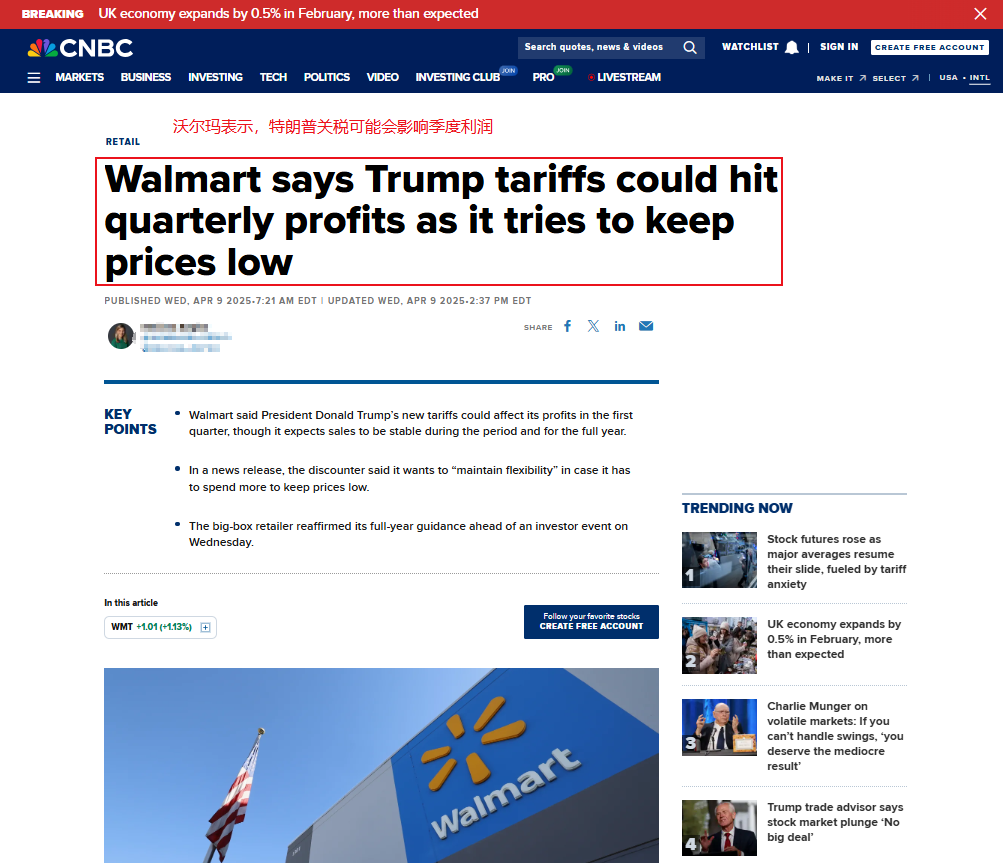 美国零售巨头沃尔玛宣布,由于特朗普政府新一轮关税政策带来的不确定性,尤其是来自中国、越南等核心采购地的进口成本压力持续攀升,公司决定取消此前对2025年第一季度营业收入增长0.5%-2.0%的预测。