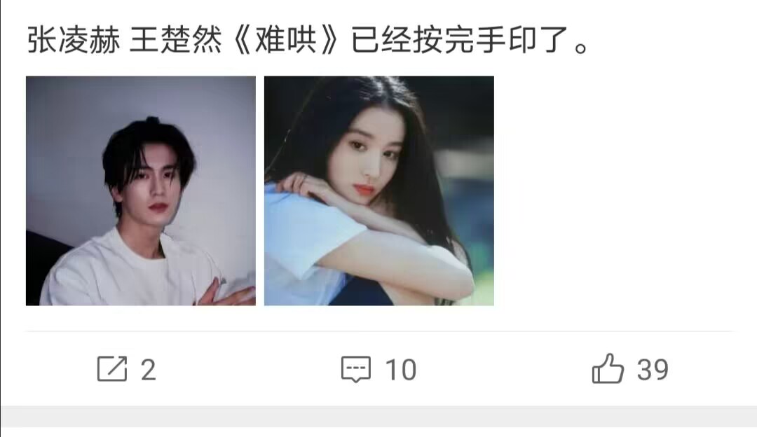 《难哄》被传影视化已经有一年多时间了,期间被传男女主选角涉及到多位顶流艺人和大小花,譬如:肖战、迪丽热巴、杨紫、陈飞宇等,而传的最为广的则是今年3月份称男女主由张凌赫和王楚然饰演,当时因两人都是高颜值大家还挺满意的,后来也不了了之了。