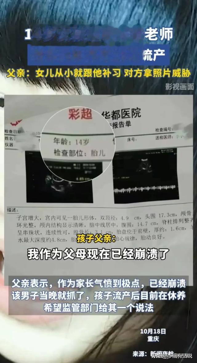 10月20日,重庆长寿,有网友发布视频,14岁少女遭遇45岁辅导老师性侵长达两年,怀孕19周后,女孩做体检后才被发现,女孩父亲愤怒报警,视频传到网上,第一时间引起了舆论的关注和广大网友的热议!