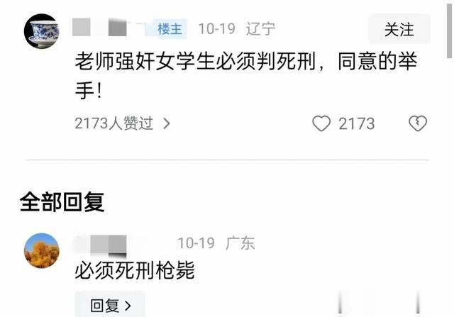 甚至还有网友强烈的表达了自己的观点:老师这样对待自己的女学生,必须要判处死刑!