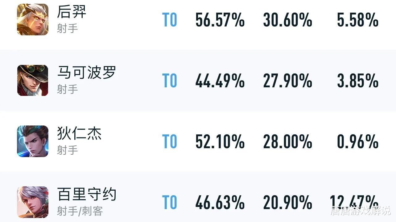由此可见,尽管是官方公布的数据,也是不可以尽信的,但其中的狄仁杰和后羿,却是实打实的T0强度射手,虽然两者都没有位移技能,可都是S28赛季更新后的受益者,玩法多样输出稳定。