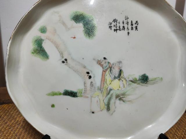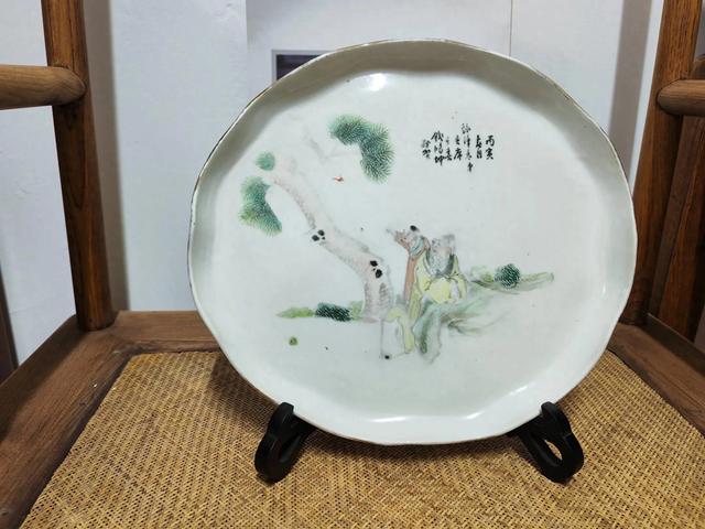 这是一件民国时期,江西景德镇出品,浅绛彩人物茶盘,直径二十七公分。