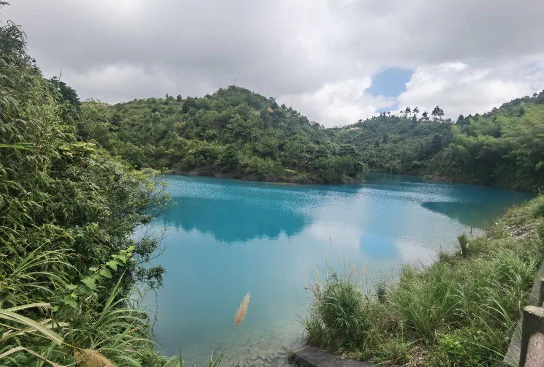 而说到军营村的标志性景点,不得不提的就是那被誉为“闽南小九寨沟”的七彩池。这个月牙形的水池清澈见底,颜色斑斓,宛如一颗璀璨的宝石镶嵌在青山绿水之间。站在池边,你会被眼前的美景深深吸引,忘却尘世的烦恼与忧愁。