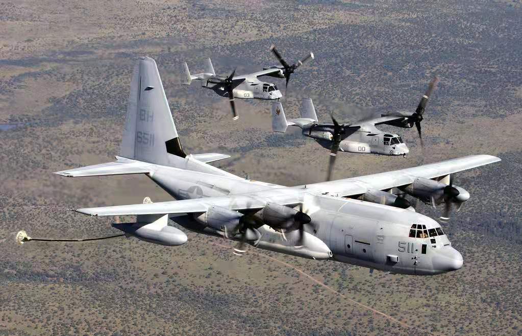 C-130战术运输机:绰号“大力神”是由美国洛克希德公司的“臭鼬工厂”设计,1956年开始交付美军,服役的60余年里,共生产2300多架,航程3800公里,载重量19.8吨,可运载92名士兵,已外销到70余个国家和地区。