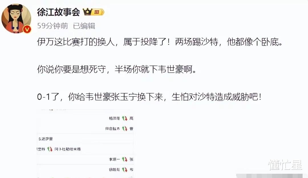 下半场,伊万的换人策略成为了媒体和球迷关注的焦点。他的一系列换人举动,被一些媒体解读为“投降”甚至“卧底”。 “伊万这换人,简直匪夷所思!” 不少球迷在社交媒体上表达了不满。 敖铭在赛后评论中直言不讳地批评了伊万的战术过于保守,认为张玉宁的首发安排并不恰当,错失了宝贵的得分机会。 徐江则更为尖锐,他认为伊万的换人策略反常,如同“卧底”一般,致使球队完全丧失了竞争力。 “伊万没苦硬吃,这场比赛他明显放弃了。” 徐江的评论在网络上引发了广泛的讨论。