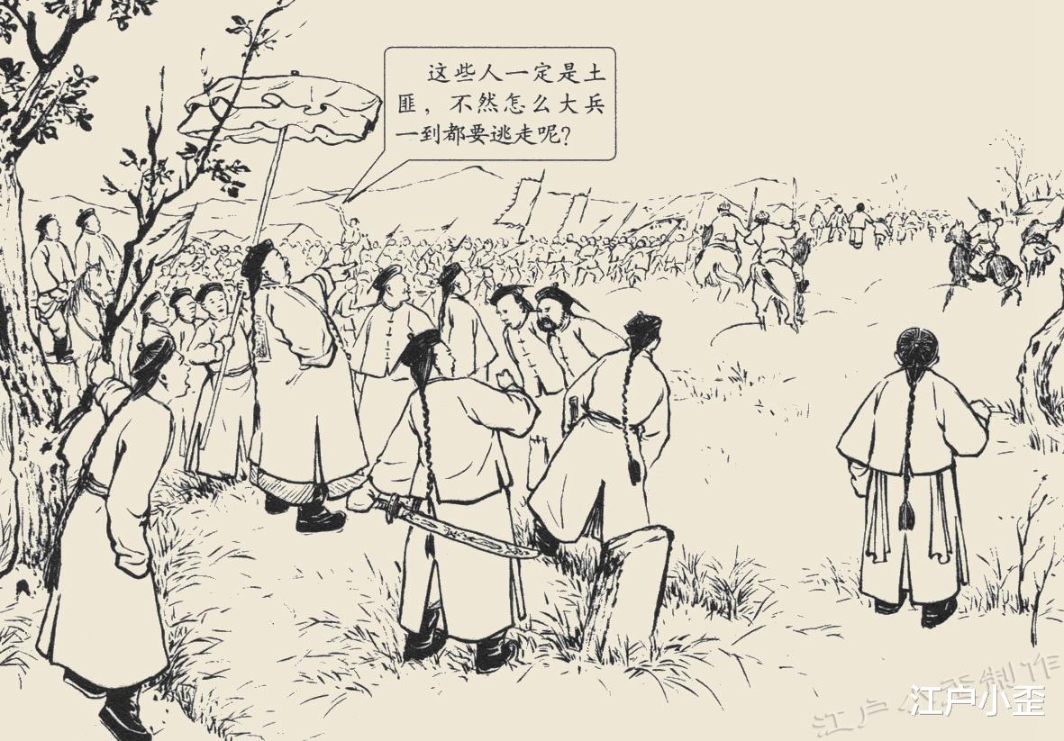 村里的百姓,看到大批官兵这样阵势,都吓坏了,胆子小的人缩在屋子里,胆子大的稍微探头张望。胡老爷看了,说:“那些鬼鬼祟祟的,一定是贼寇,给我杀!”