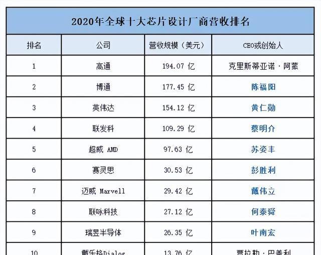 在2020年时,全球前十的半导体厂商名单,其中有8家公司中的创始人或者CEO都是华人。