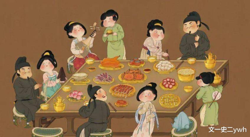 这顿年夜饭是在家中的后堂吃的,合家大小团聚一堂。照例是西门庆与吴月娘居于上坐,李娇儿、孟玉楼、潘金莲、孙雪娥、西门大姐和女婿陈经济,都依次上前给他们两个敬了酒,就在两旁列坐。