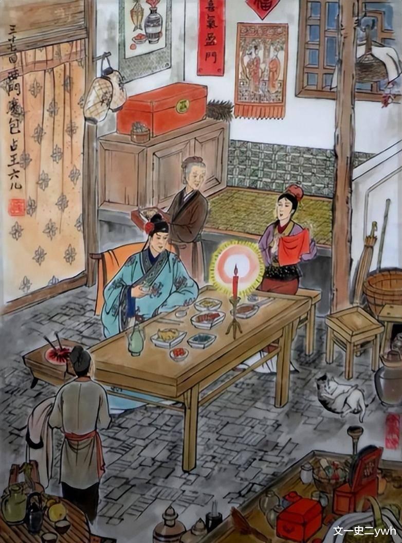 作者兰陵笑笑生还特别写到了除夕之夜的这顿年夜饭。这在书中是前所未有的。
