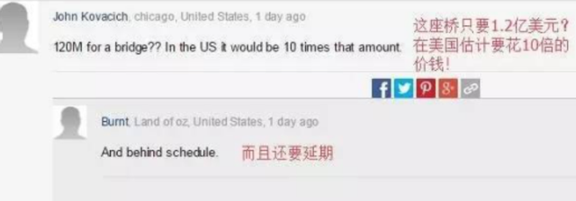 而国外网友借机比较了一下中国和其他国家的效率,如果让某些国家也来建造这样一座大桥,比如英国、美国、法国等,最少也得30年才能完工,还需30年商量讨论。