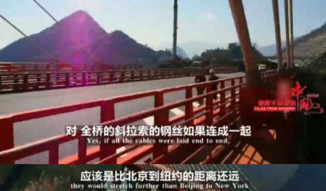 据说北盘江第一桥用的钢索连接起来,比从北京到纽约的距离还要长。