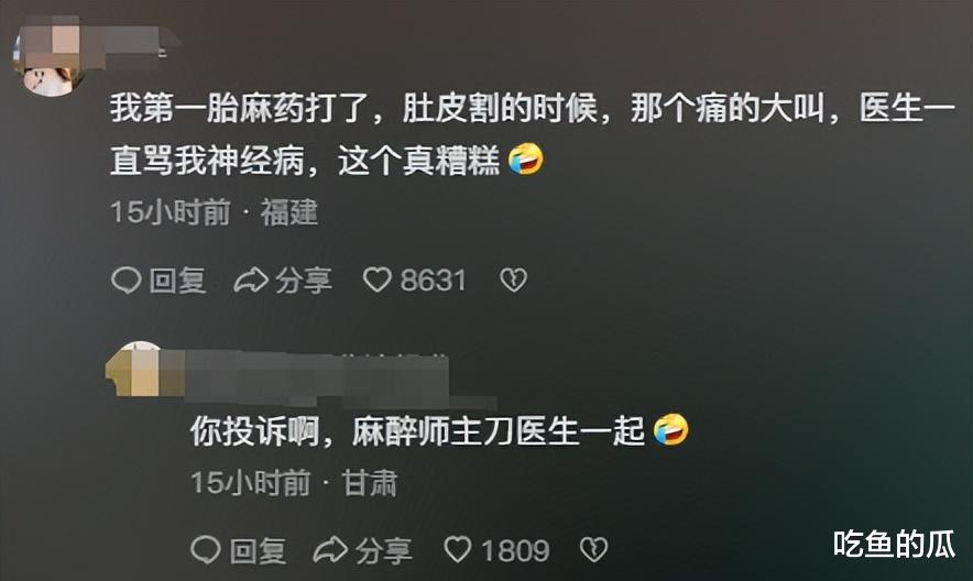 有网友回忆起自己生孩子时,打过麻药依旧感觉痛,隔肚皮时大喊大叫,结果被医生骂作是神J病。