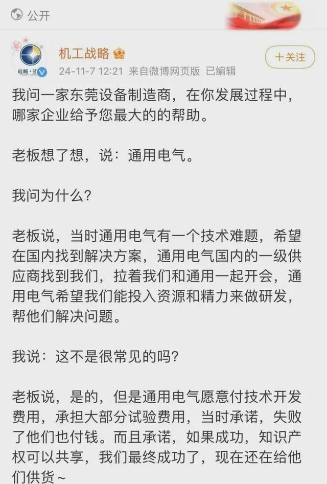 前阵子,机械工业信息研究院战略所官微号“@机工战略”分享了一则故事,引起了广泛关注。故事中提到一家位于东莞的设备制造商,在其发展过程中得到了一家国际企业的大力帮助——美国通用电气(GE)。