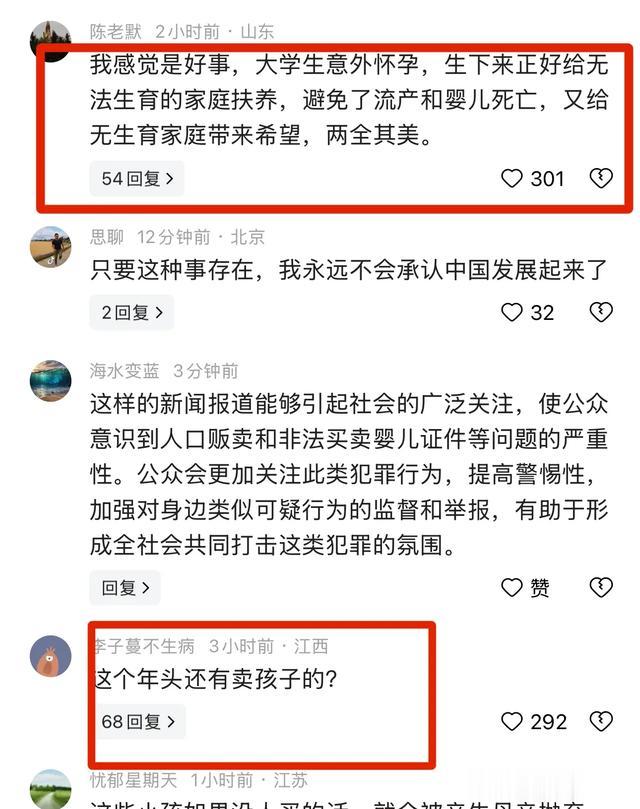 但是有的网友也认为,中介的这种因为虽然不合法,但是有好处。网友打比方,一个人生了孩子不想养,恰好有人又想要这个孩子,那这个孩子的归属还不如给想要孩子的这个呢!