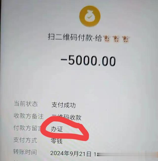 还专门把自己的收款截图给记者看,而根据中介的说法,这是有人办理证件给他预付的订金5000元。
