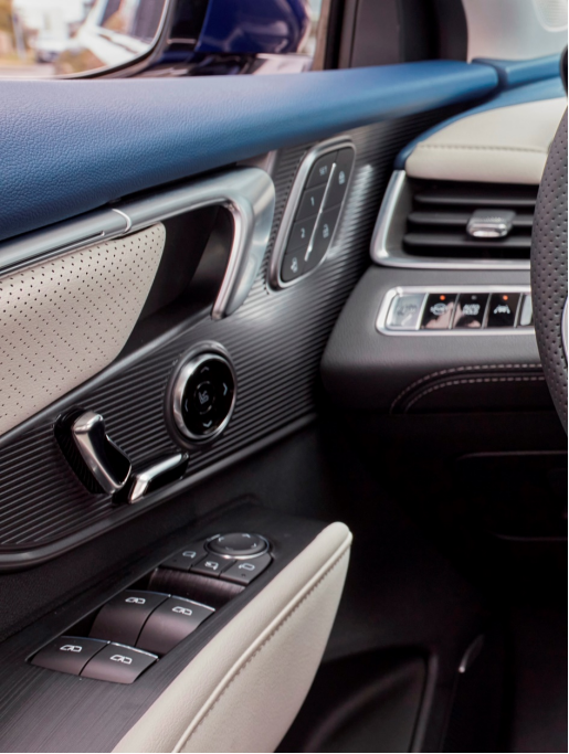 打开车门,侧面的门把手采用“回旋镖”造型,门板甚至用上了打孔皮革,拉丝纹理配合电镀饰条,提升了整体质感。门板座椅电动调节键与别克世纪和奔驰同款,旁边的圆形键集成了电动腰托和座椅通风调节,门把手前方还有2挡座椅记忆和车门解锁落锁按键等,配置相当豪华。