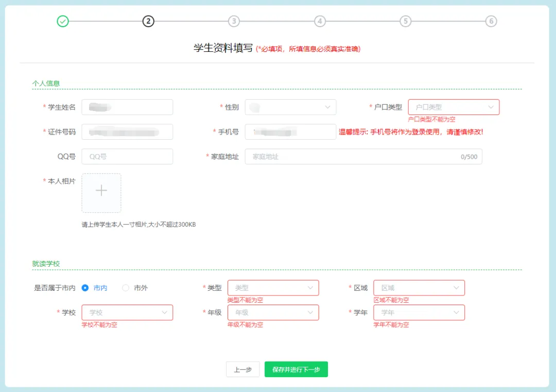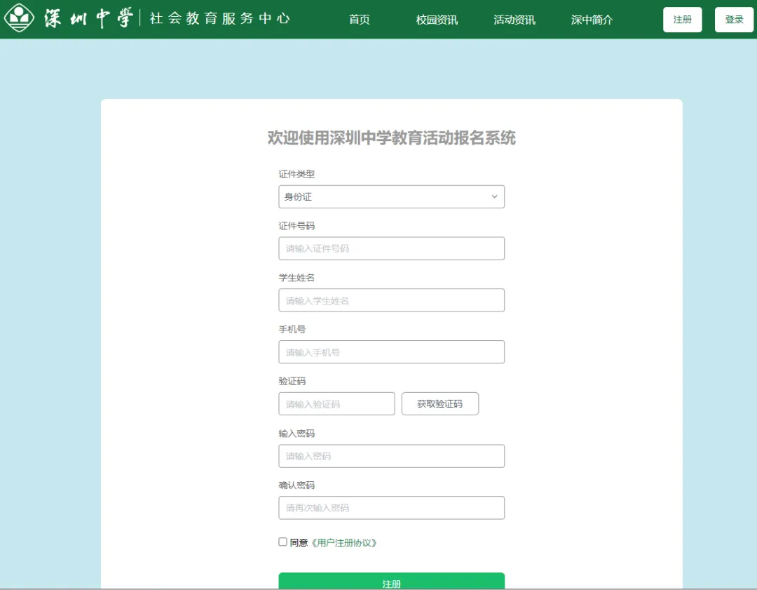 填写信息,同意协议并注册(注意:这里的身份证号等需要填写孩子本人信息)。