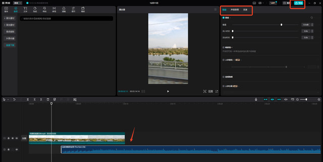音乐和音效素材均有进行一定分类,也支持搜索查找。下载就能试听,满意即可添加,开始时间、音量、音色、场景音等都能按需调整,最后导出就完成了。