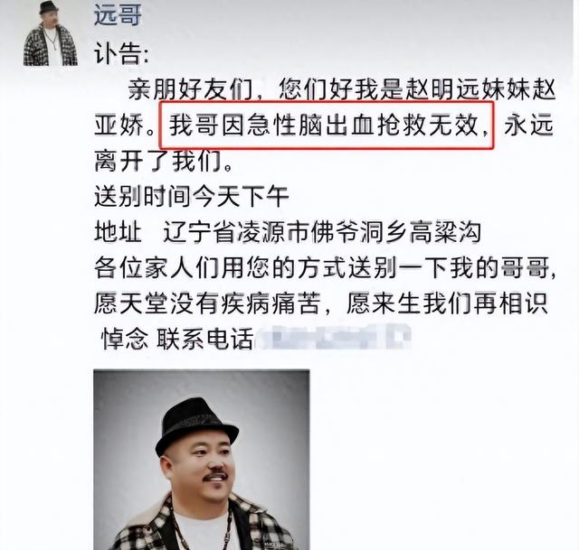 2023年10月14日,一个噩耗突然传来。42岁的赵明远因急性脑出血被紧急送医,但最终抢救无效去世。