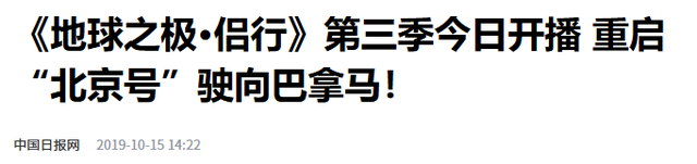 中国日报网:《地球之极·侣行》第三季今日开播 重启“北京号”驶向巴拿马!--2019-10-15