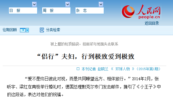 人民网:“侣行”夫妇,行到极致爱到极致--2015-01-06