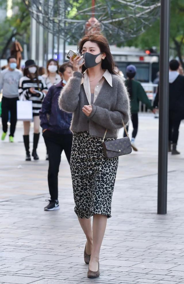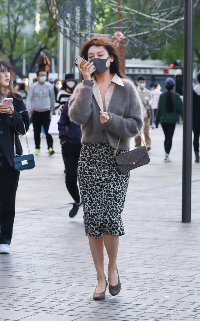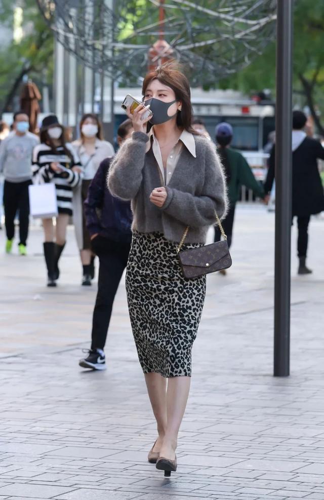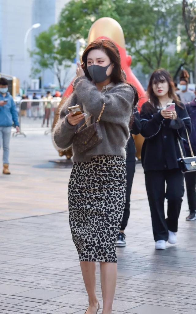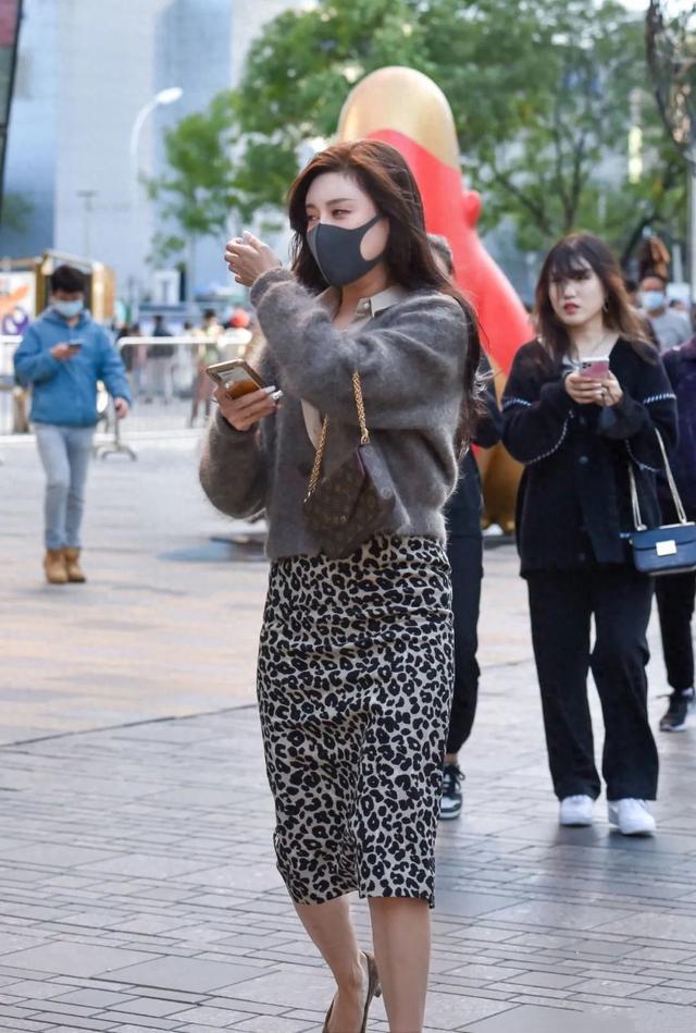 穿豹纹短裙搭配高跟鞋尽显性感身材的时尚御姐