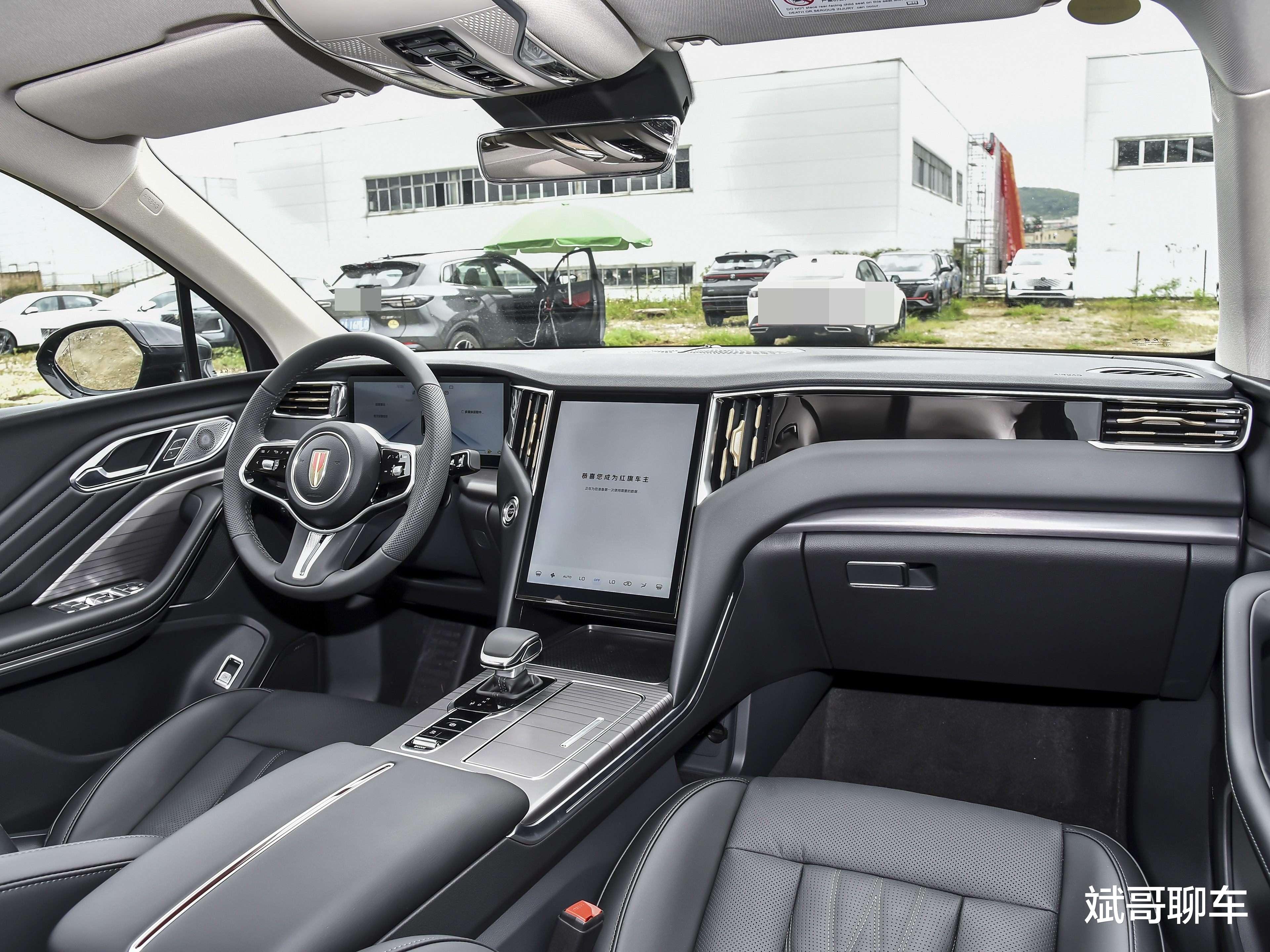 进入车内,红旗HS7的内饰设计同样给人一种豪华大气的感觉。中控台采用了对称式设计,线条简洁干练。用料方面也相当考究,大面积的软质材料包裹,触感细腻。12.6英寸的中控屏幕显示效果清晰,操作流畅,集成了导航、娱乐、车辆设置等功能。12.3英寸的全液晶仪表盘显示信息丰富,科技感十足。
