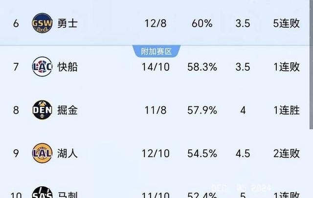 西部排名再度交换,快船拿到了第六,而湖人只能屈居第七。