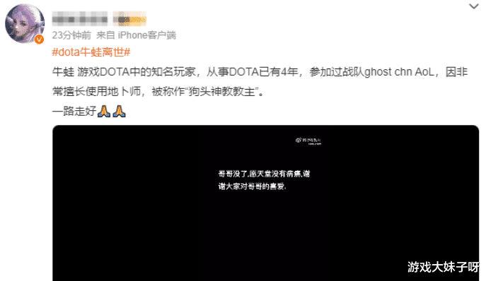 知名dota网红牛蛙去世,年仅38岁,死亡原因跟久坐憋尿有关,4月7日,游戏界传来令人悲痛的消息,知名《DOTA》玩家兼视频博主“dota牛蛙”因尿毒症不幸去世,年仅38岁,这一消息由他的妹妹通过其抖音账号发布,引发了广大玩家和粉丝的深切哀悼。