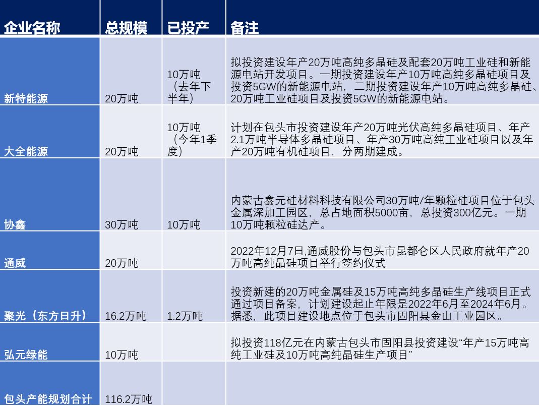 巴彦淖尔多晶硅产业情况;赶碳号制表