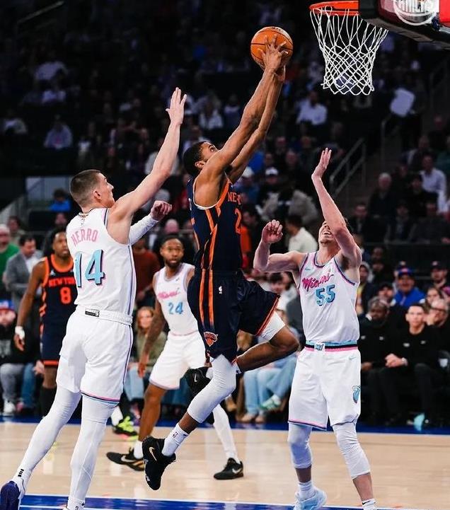 在尼克斯与热火的比赛中,尼克斯在第三节强势发挥,以41-15的比分奠定胜局,最终大胜热火。热火这边除了邓罗投篮12投8中,三分9中5砍下22分2篮板2助攻有点进攻火力,热火其他球员三分合计14中1,可以说是惨不忍睹。?