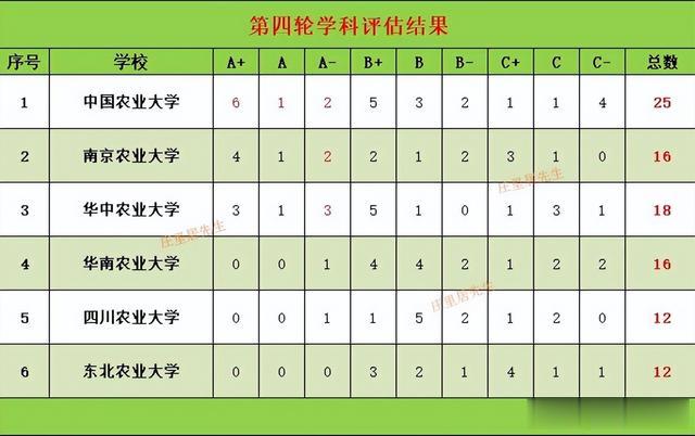 南农则有作物学、农业资源与环境、植物保护、农林经济管理等4个A+,公共管理为A,食品科学与工程和园艺学为A-,也是共有7个A类学科。