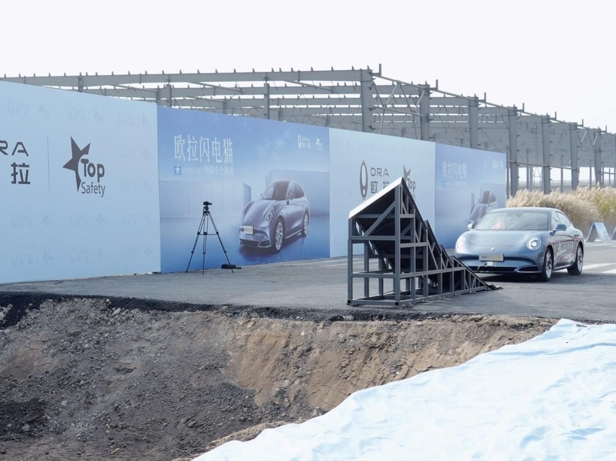 2022年10月20日,欧拉闪电猫在中国汽车技术研究中心授权的场地内,参加了TOP Safety举办的国内首次电动车高速螺旋翻滚跌落挑战。
