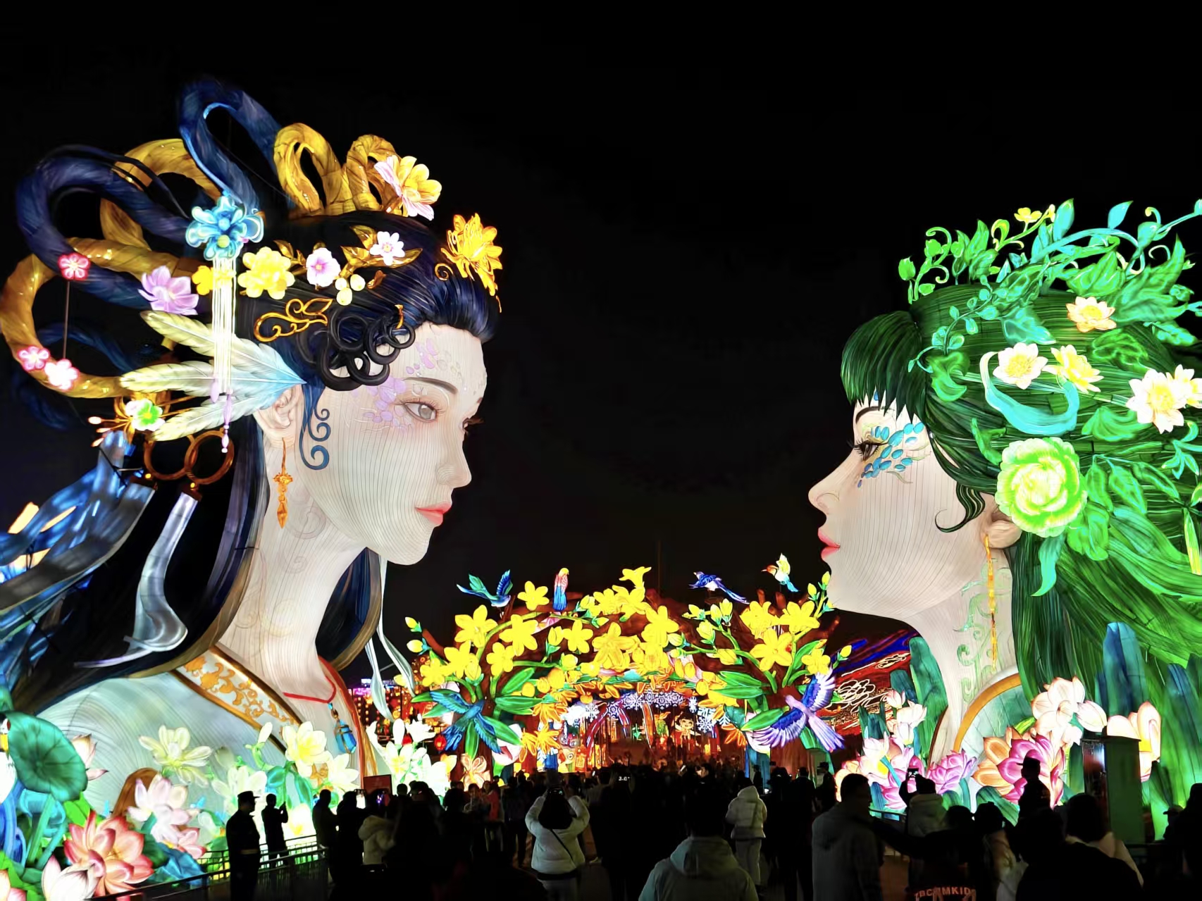 如果说自贡灯会以工艺精湛见长,南京秦淮灯会以历史悠久著称,那么上海豫园灯会则侧重在策展和设计过程中突破创新。近年来,以山海经IP为核心,豫园灯会致力于打造复合型文旅场景,将传统非遗融入海派文化的城市背景。今年春节期间,豫园高约9米的生肖灯组引人注目,其设计灵感便来源于《山海经》。豫园华灯副总经理周鸣翔表示,豫园灯会运用最新数字技术,吸收了年轻文创群体的智慧,为非遗灯会拓展了边界,从而撬动“文化+科技”的多维共振。