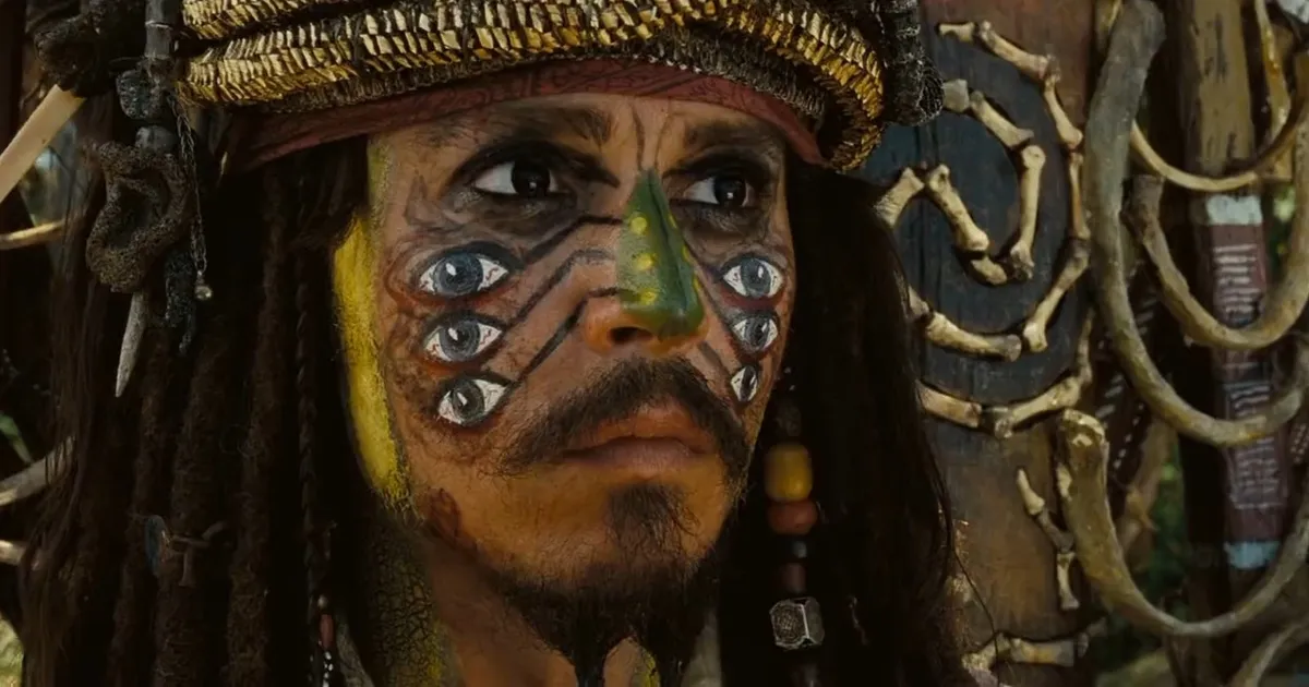 德普,当然,扮演古怪的骗子海盗船长杰克·斯派洛,特点是他醉酒后的大摇大摆,说话含糊不清,挥舞着手势。
