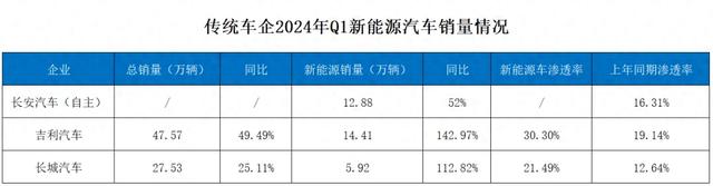 进入2024年,吉利1月份便以21.3万辆的销量超越了比亚迪,不仅重回自主第一,也登顶了全行业销冠。可谓是为2024开了一个好头。据统计数据显示,吉利汽车Q1乘用车销量达47.57万辆,其中新能源车型14.41万辆,新能源车渗透率达30.30%,大幅领先同为国产传统车企的长安汽车和长城汽车, “全面向新”成果凸显。