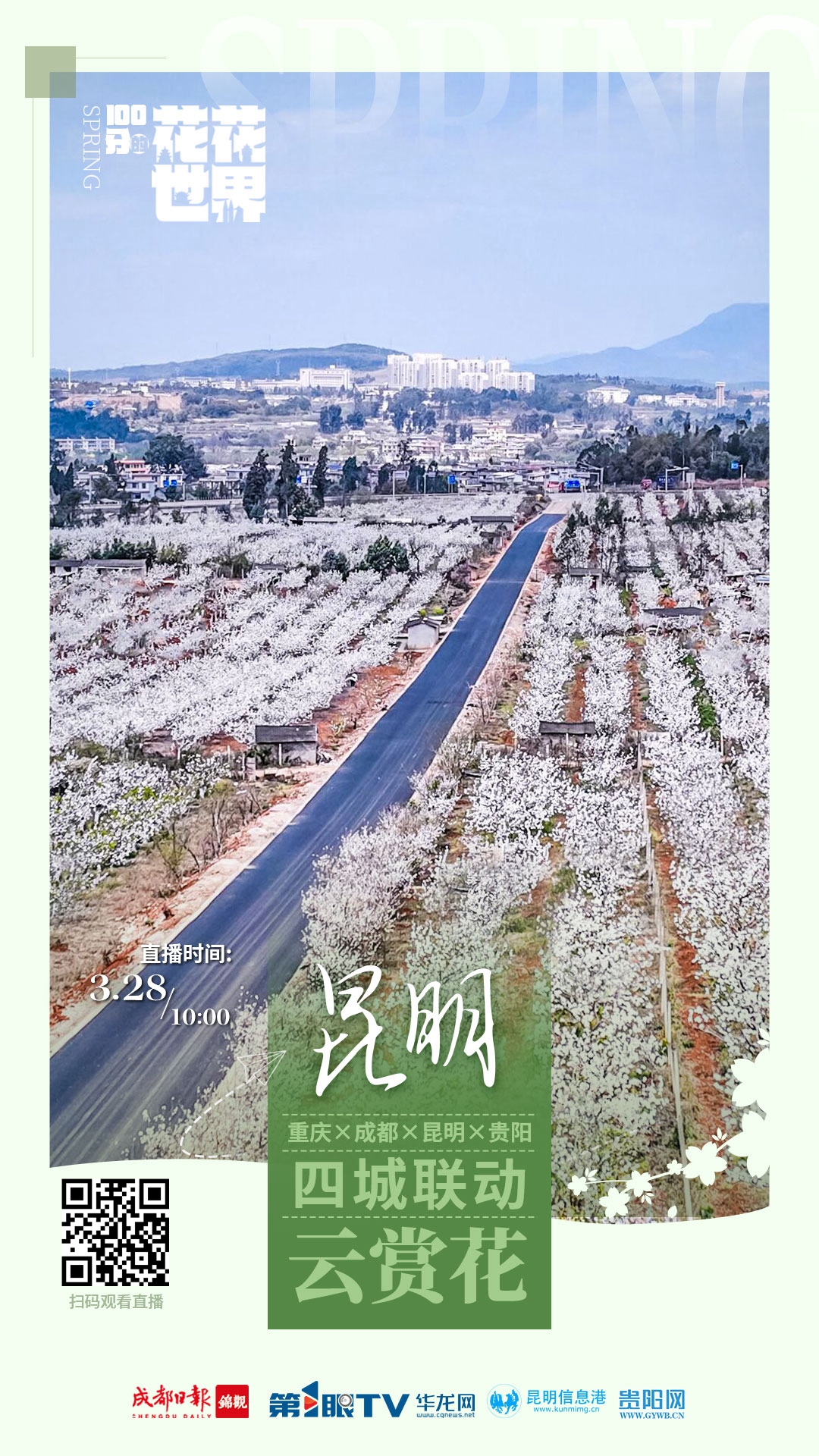 贵阳网·甲秀新闻讯 3月28日10点,“100分的‘花花世界’——重庆×成都×昆明×贵阳四城联动‘云赏花’”联动直播第四站走进昆明“花花世界”。