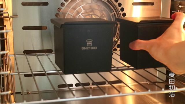 在面团发酵快要完成时,用160度预热风炉烤箱。当面团发酵至高度达到模具的9成,按压面团表面轻微回弹,则说明发酵到位,当前环境下我大约用了50分钟。