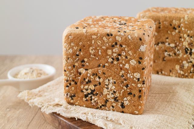 将多种谷物沾在吐司的表面,既增加了全麦吐司的风味,又可以提供更全面的营养。从外表来看,也给人一种更健康感觉。