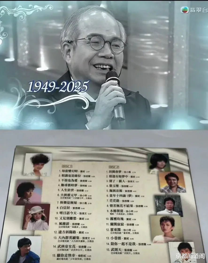 《大地恩情》流淌着农耕文明里对故乡的眷恋,《浮生六劫》裹藏着都市人漂泊无依的孤独,《万里长城永不倒》也能唱出“江山秀丽叠彩峰岭”这般深厚的家国情怀。多少流行金曲,曾是他笔尖流淌的传奇,如今都成了追忆的碎片,散落在风中。